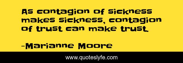 This page presents the quote "As contagion of sickness makes sickness, contagion of trust can make trust.". Author of this quote is Marianne Moore. This quote is about sickness, makes, contagion,.