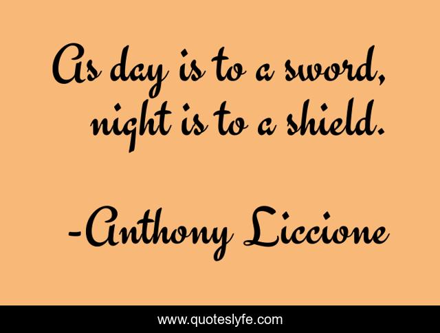 "Anthony Liccione Quotes." Quoteslyfe.com, 2025. Mon. 08 Dec. 2025. <https://www.quoteslyfe.com/quote/As-day-is-to-a-sword-night-127194>.