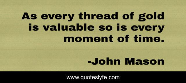 This page presents the quote "As every thread of gold is valuable so is every moment of time.". Author of this quote is John Mason. This quote is about day, one,.