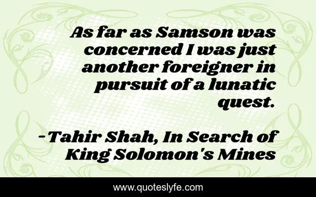 "Tahir Shah, In Search of King Solomon's Mines Quotes." Quoteslyfe.com, 2025. Fri. 05 Dec. 2025. <https://www.quoteslyfe.com/quote/As-far-as-Samson-was-concerned-I-174394>.