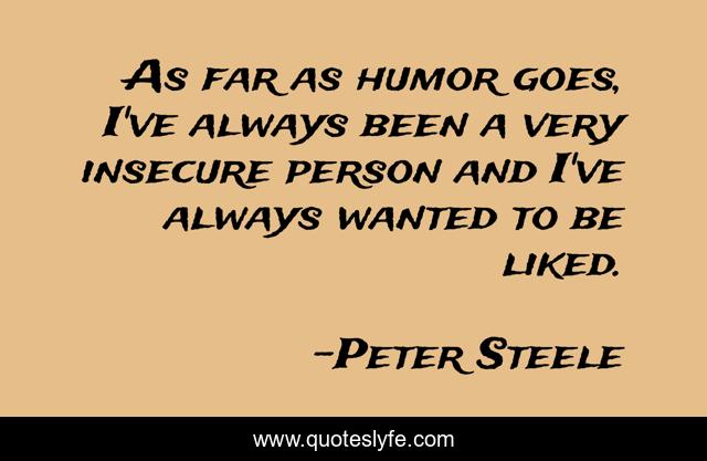 This page presents the quote "As far as humor goes, I've always been a very insecure person and I've always wanted to be liked.". Author of this quote is Peter Steele. This quote is about far, person, always,.