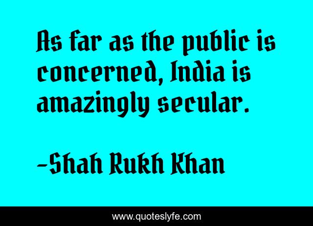 This page presents the quote "As far as the public is concerned, India is amazingly secular.". Author of this quote is Shah Rukh Khan. This quote is about far, india, public,.