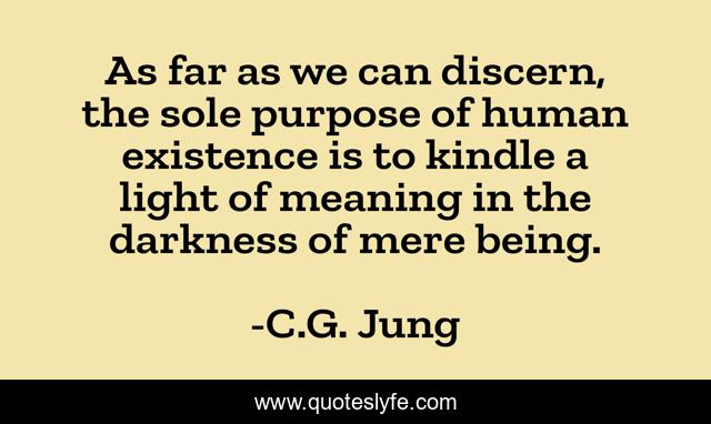 This page presents the quote "As far as we can discern, the sole purpose of human existence is to kindle a light of meaning in the darkness of mere being.". Author of this quote is C.G. Jung. .