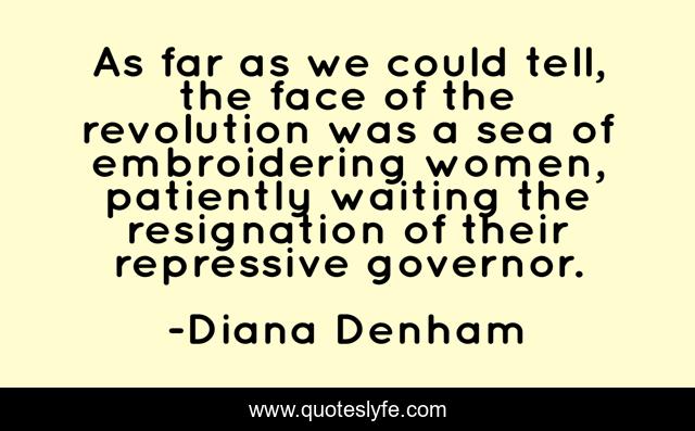 This page presents the quote "As far as we could tell, the face of the revolution was a sea of embroidering women, patiently waiting the resignation of their repressive governor.". Author of this quote is Diana Denham. This quote is about activism, oaxaca, embroidery, sewing,.