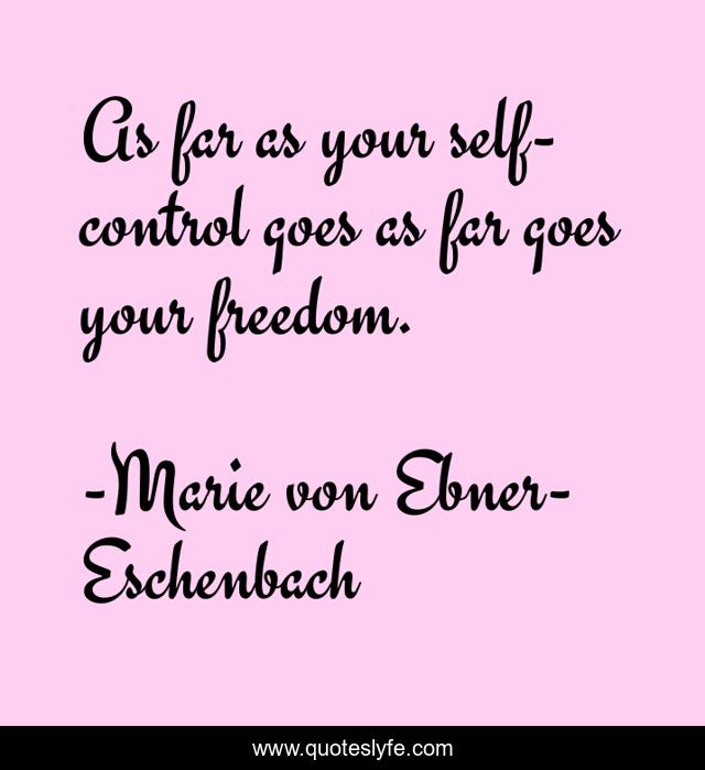 "Marie von Ebner-Eschenbach Quotes." Quoteslyfe.com, 2025. Fri. 05 Dec. 2025. <https://www.quoteslyfe.com/quote/As-far-as-your-self-control-goes-275920>.