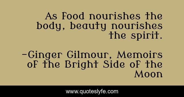 "Ginger Gilmour, Memoirs of the Bright Side of the Moon Quotes." Quoteslyfe.com, 2025. Tue. 09 Dec. 2025. <https://www.quoteslyfe.com/quote/As-food-nourishes-the-body-beauty-nourishes-61329>.