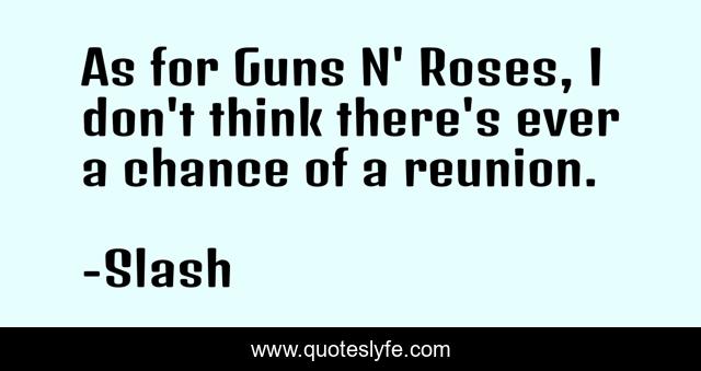 This page presents the quote "As for Guns N' Roses, I don't think there's ever a chance of a reunion.". Author of this quote is Slash. This quote is about roses, think, reunion,.