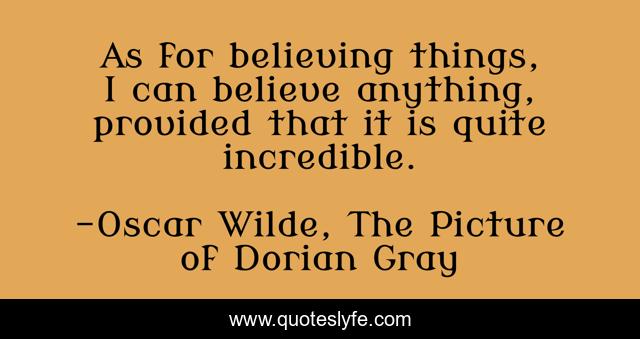 "Oscar Wilde, The Picture of Dorian Gray Quotes." Quoteslyfe.com, 2025. Sun. 07 Dec. 2025. <https://www.quoteslyfe.com/quote/As-for-believing-things-I-can-believe-160101>.