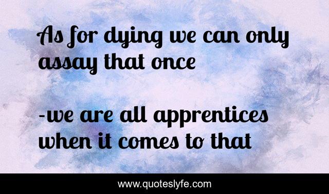 "we are all apprentices when it comes to that Quotes." Quoteslyfe.com, 2025. Sat. 06 Dec. 2025. <https://www.quoteslyfe.com/quote/As-for-dying-we-can-only-assay-220240>.