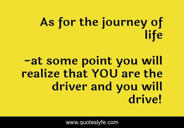"at some point you will realize that YOU are the driver and you will drive! Quotes." Quoteslyfe.com, 2025. Sat. 06 Dec. 2025. <https://www.quoteslyfe.com/quote/As-for-the-journey-of-life-174361>.