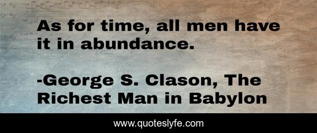 "George S. Clason, The Richest Man in Babylon Quotes." Quoteslyfe.com, 2025. Sat. 06 Dec. 2025. <https://www.quoteslyfe.com/quote/As-for-time-all-men-have-it-38743>.