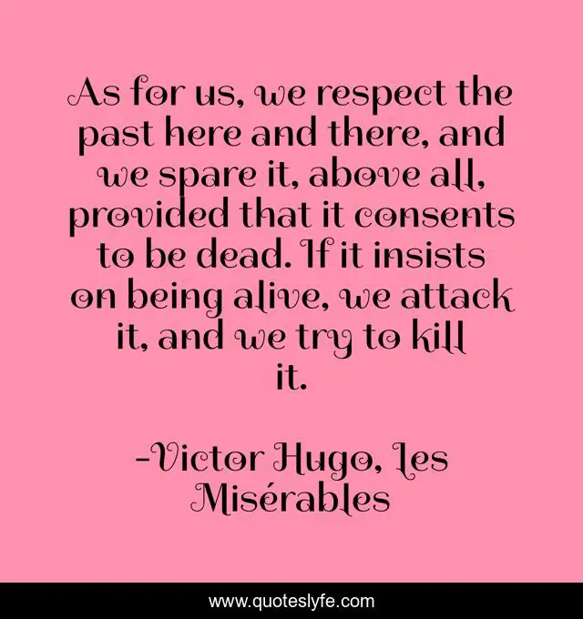 "Victor Hugo, Les Misérables Quotes." Quoteslyfe.com, 2025. Fri. 05 Dec. 2025. <https://www.quoteslyfe.com/quote/As-for-us-we-respect-the-past-143458>.