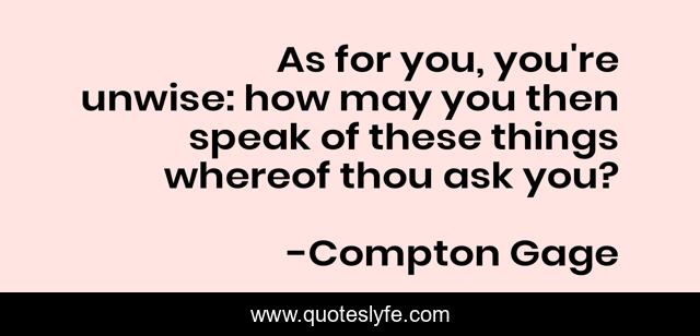 "Compton Gage Quotes." Quoteslyfe.com, 2025. Fri. 05 Dec. 2025. <https://www.quoteslyfe.com/quote/As-for-you-you-re-unwise-how-17541>.