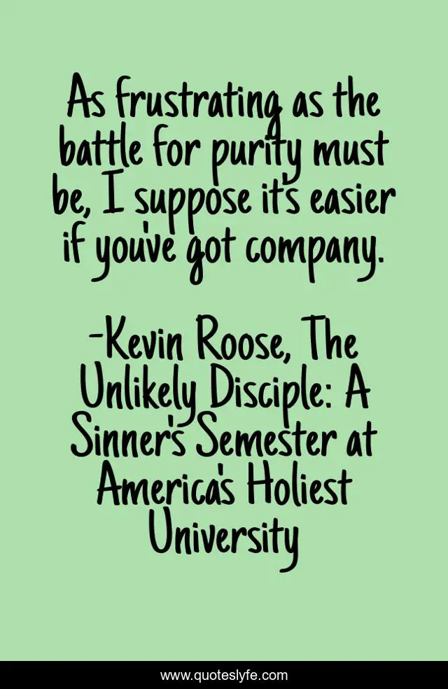 "Kevin Roose, The Unlikely Disciple: A Sinner's Semester at America's Holiest University Quotes." Quoteslyfe.com, 2025. Fri. 05 Dec. 2025. <https://www.quoteslyfe.com/quote/As-frustrating-as-the-battle-for-purity-206218>.