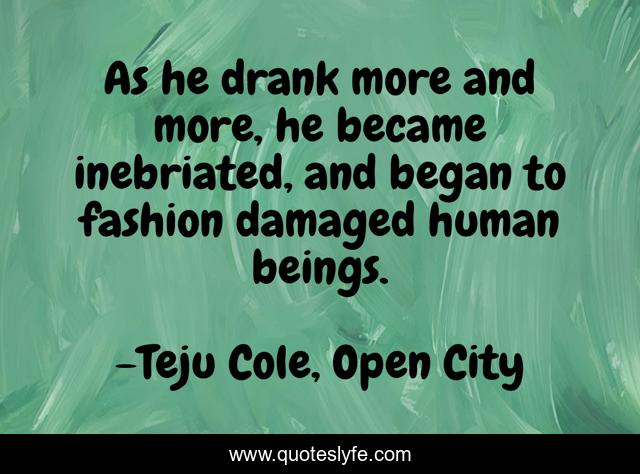 This page presents the quote "As he drank more and more, he became inebriated, and began to fashion damaged human beings.". Author of this quote is Teju Cole, Open City. .