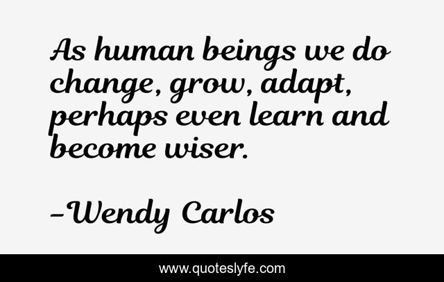 This page presents the quote "As human beings we do change, grow, adapt, perhaps even learn and become wiser.". Author of this quote is Wendy Carlos. This quote is about learn, adapt, grow,.