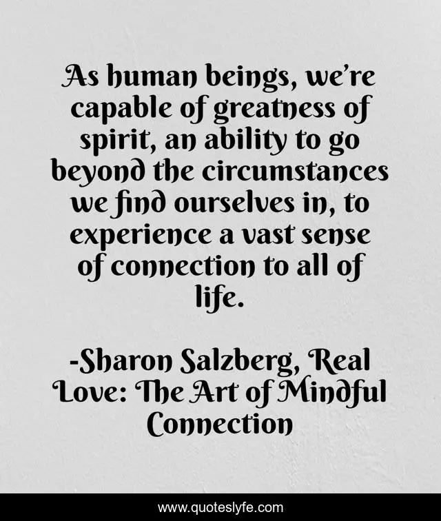 "Sharon Salzberg, Real Love: The Art of Mindful Connection Quotes." Quoteslyfe.com, 2025. Sun. 07 Dec. 2025. <https://www.quoteslyfe.com/quote/As-human-beings-we-re-capable-of-117713>.