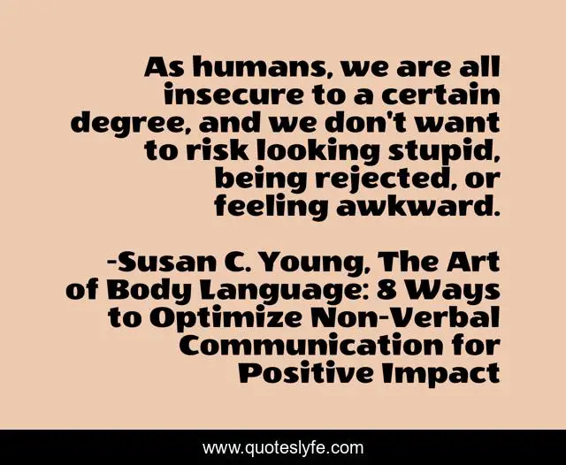 "Susan C. Young, The Art of Body Language: 8 Ways to Optimize Non-Verbal Communication for Positive Impact Quotes." Quoteslyfe.com, 2025. Sat. 06 Dec. 2025. <https://www.quoteslyfe.com/quote/As-humans-we-are-all-insecure-to-233530>.