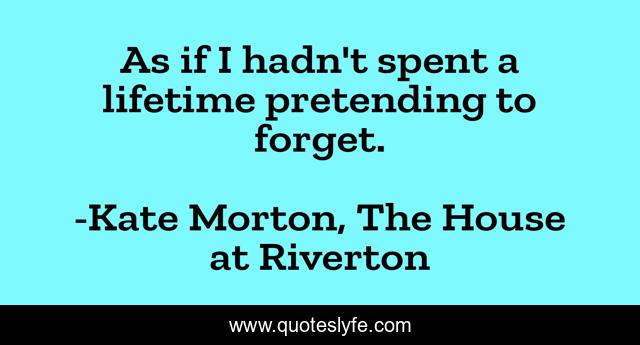 This page presents the quote "As if I hadn't spent a lifetime pretending to forget.". Author of this quote is Kate Morton, The House at Riverton. .