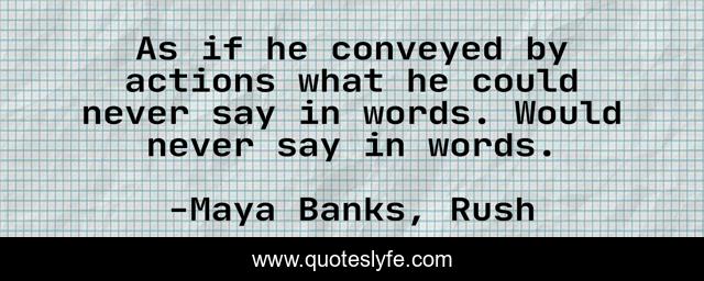 This page presents the quote "As if he conveyed by actions what he could never say in words. Would never say in words.". Author of this quote is Maya Banks, Rush. This quote is about rush, maya-banks, actions, words,.