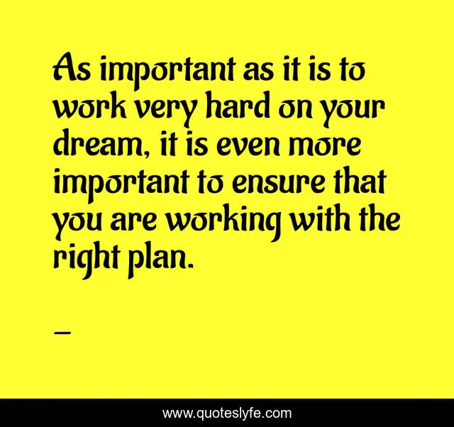 This page presents the quote "As important as it is to work very hard on your dream, it is even more important to ensure that you are working with the right plan.". Author of this quote is . This quote is about edmond-mbiaka, formula, working-with-the-right-plan, working-hard-on-your-dream, strategy,.