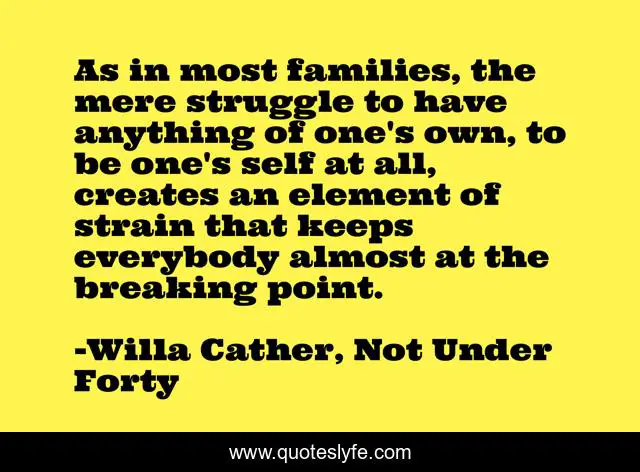 This page presents the quote "As in most families, the mere struggle to have anything of one's own, to be one's self at all, creates an element of strain that keeps everybody almost at the breaking point.". Author of this quote is Willa Cather, Not Under Forty. .