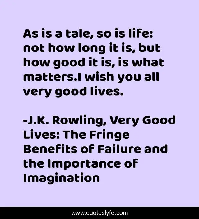 "J.K. Rowling, Very Good Lives: The Fringe Benefits of Failure and the Importance of Imagination Quotes." Quoteslyfe.com, 2025. Mon. 08 Dec. 2025. <https://www.quoteslyfe.com/quote/As-is-a-tale-so-is-life-2251>.