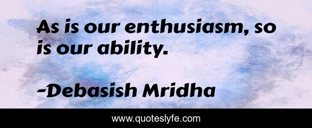 This page presents the quote "As is our enthusiasm, so is our ability.". Author of this quote is Debasish Mridha. This quote is about life, love, knowledge, inspirational, intelligence, philosophy, wisdom, quotes, affection,.