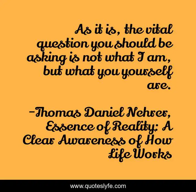 "Thomas Daniel Nehrer, Essence of Reality: A Clear Awareness of How Life Works Quotes." Quoteslyfe.com, 2025. Sun. 07 Dec. 2025. <https://www.quoteslyfe.com/quote/As-it-is-the-vital-question-you-155782>.