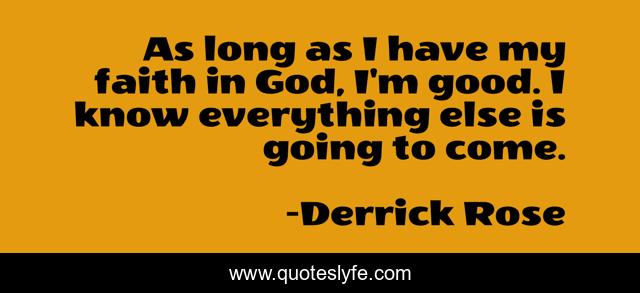 This page presents the quote "As long as I have my faith in God, I'm good. I know everything else is going to come.". Author of this quote is Derrick Rose. This quote is about faith, long, god,.