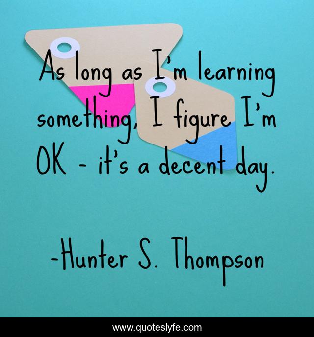This page presents the quote "As long as I'm learning something, I figure I'm OK - it's a decent day.". Author of this quote is Hunter S. Thompson. This quote is about day, long, something,.