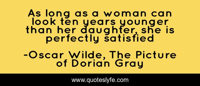 This page presents the quote "As long as a woman can look ten years younger than her daughter, she is perfectly satisfied". Author of this quote is Oscar Wilde, The Picture of Dorian Gray. This quote is about satisfaction, beauty, women,.