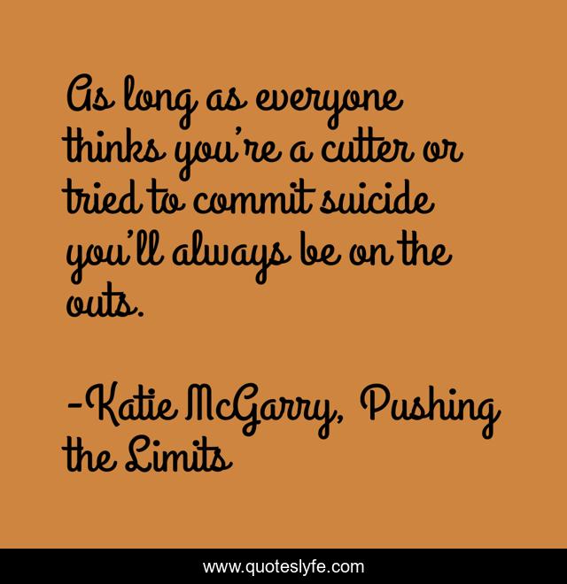 This page presents the quote "As long as everyone thinks you’re a cutter or tried to commit suicide you’ll always be on the outs.". Author of this quote is Katie McGarry, Pushing the Limits. .