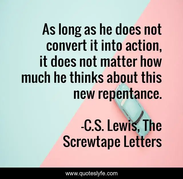 This page presents the quote "As long as he does not convert it into action, it does not matter how much he thinks about this new repentance.". Author of this quote is C.S. Lewis, The Screwtape Letters. .