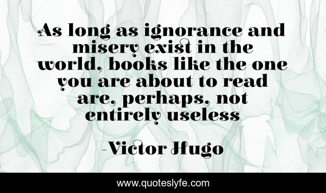 This page presents the quote "As long as ignorance and misery exist in the world, books like the one you are about to read are, perhaps, not entirely useless". Author of this quote is Victor Hugo. This quote is about enthusiasm, books, inspirational,.