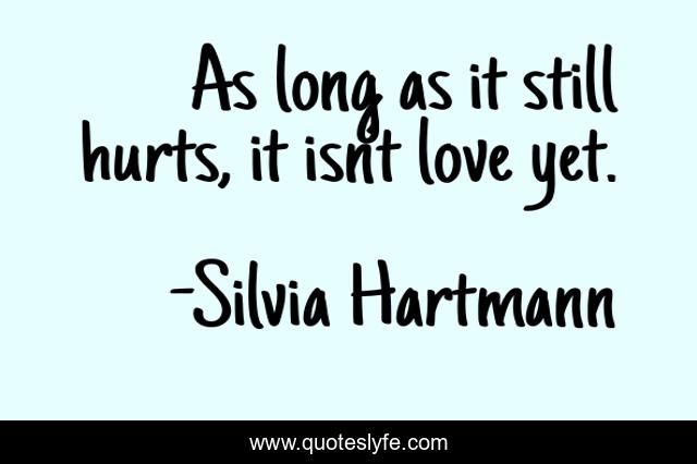 This page presents the quote "As long as it still hurts, it isn’t love yet.". Author of this quote is Silvia Hartmann. This quote is about pleasure, pain, affection, love, hurt,.