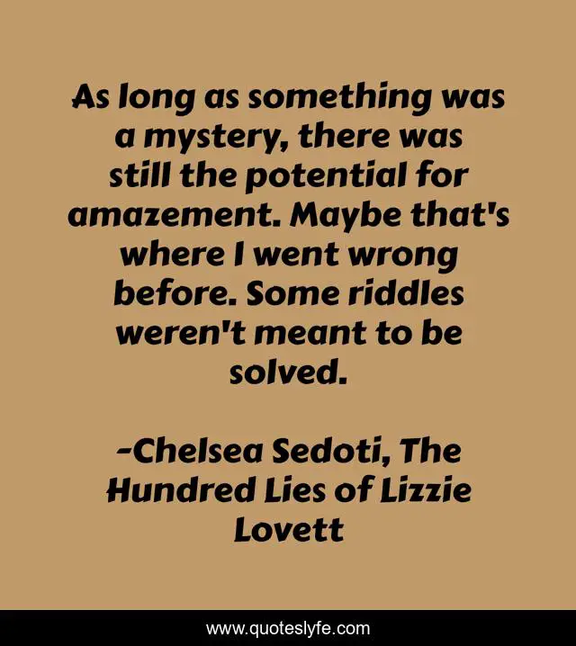 "Chelsea Sedoti, The Hundred Lies of Lizzie Lovett Quotes." Quoteslyfe.com, 2025. Mon. 08 Dec. 2025. <https://www.quoteslyfe.com/quote/As-long-as-something-was-a-mystery-146088>.
