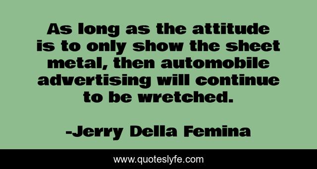 This page presents the quote "As long as the attitude is to only show the sheet metal, then automobile advertising will continue to be wretched.". Author of this quote is Jerry Della Femina. This quote is about advertising, long,.