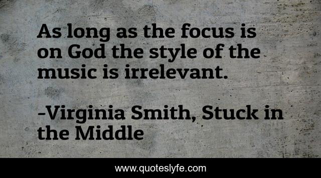 This page presents the quote "As long as the focus is on God the style of the music is irrelevant.". Author of this quote is Virginia Smith, Stuck in the Middle. This quote is about god, music, church,.