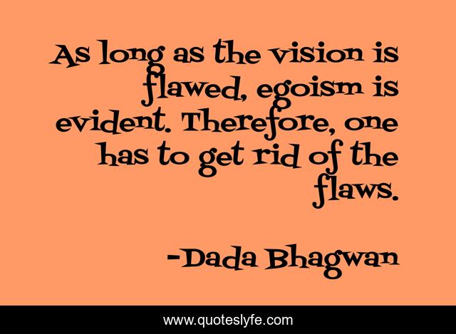 This page presents the quote "As long as the vision is flawed, egoism is evident. Therefore, one has to get rid of the flaws.". Author of this quote is Dada Bhagwan. This quote is about spiritual, vision,.