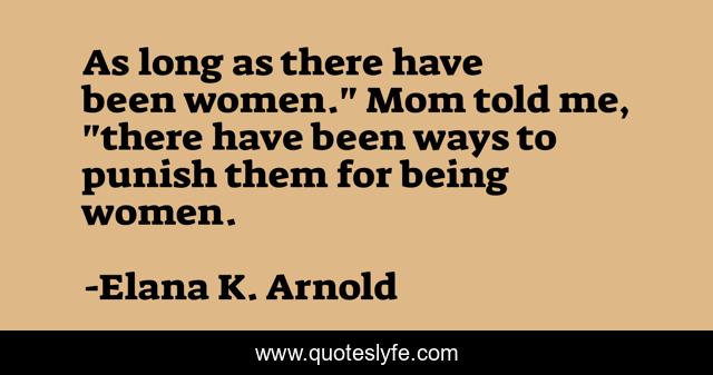 This page presents the quote "As long as there have been women." Mom told me, "there have been ways to punish them for being women.". Author of this quote is Elana K. Arnold. This quote is about punishment, women,.