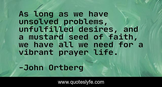 This page presents the quote "As long as we have unsolved problems, unfulfilled desires, and a mustard seed of faith, we have all we need for a vibrant prayer life.". Author of this quote is John Ortberg. .
