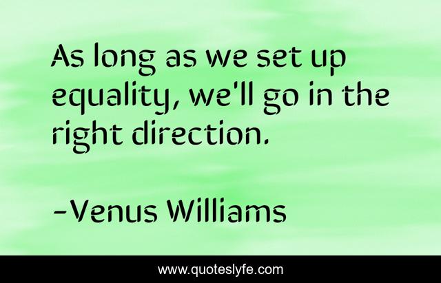 This page presents the quote "As long as we set up equality, we'll go in the right direction.". Author of this quote is Venus Williams. This quote is about direction, right, long,.