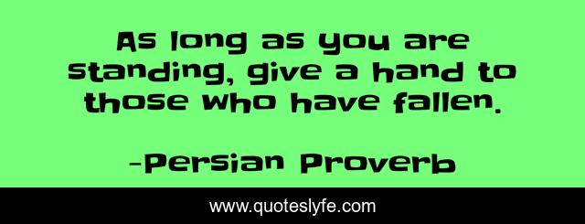 This page presents the quote "As long as you are standing, give a hand to those who have fallen.". Author of this quote is Persian Proverb. This quote is about compassion, enthusiasm, inspirational,.