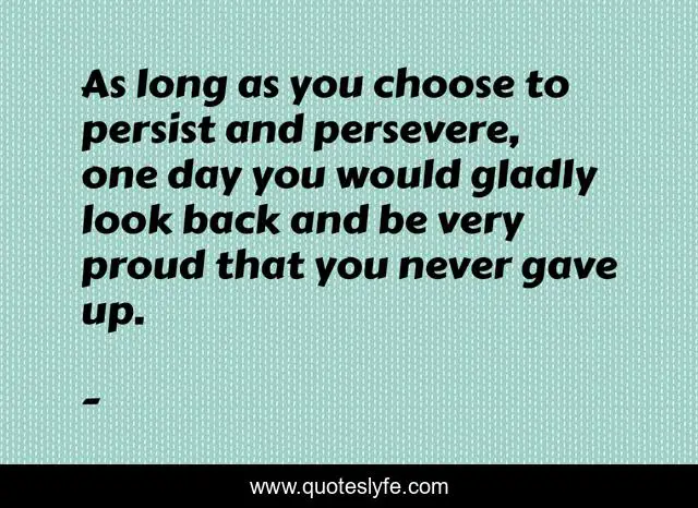 This page presents the quote "As long as you choose to persist and persevere, one day you would gladly look back and be very proud that you never gave up.". Author of this quote is . This quote is about persevere, perseverance, persisting, edmond-mbiaka, keep-pushing-forward, persistent-actions, don-t-give-up,.
