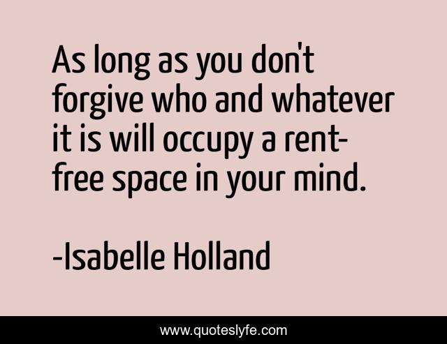 This page presents the quote "As long as you don't forgive who and whatever it is will occupy a rent-free space in your mind.". Author of this quote is Isabelle Holland. .