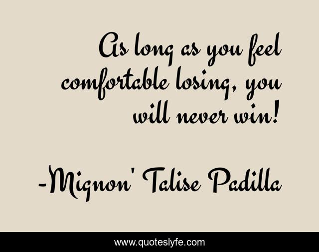 This page presents the quote "As long as you feel comfortable losing, you will never win!". Author of this quote is Mignon' Talise Padilla. This quote is about confidence, motivational, business-advice, inspire, business, motivational-inspirational, motivational-for-women, motivate, optimistic,.