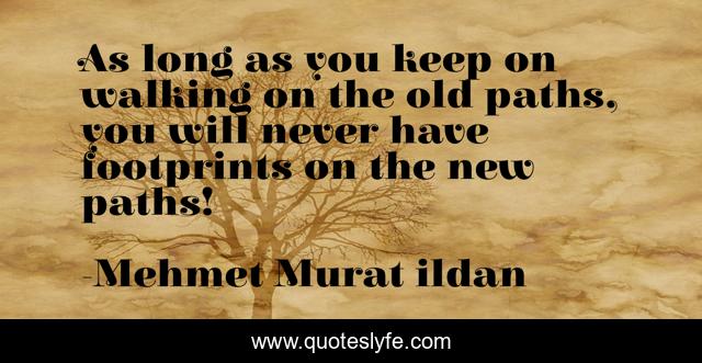 This page presents the quote "As long as you keep on walking on the old paths, you will never have footprints on the new paths!". Author of this quote is Mehmet Murat ildan. This quote is about old, ildan-words-of-wisdom, footprints, new, new-paths, path, road,.