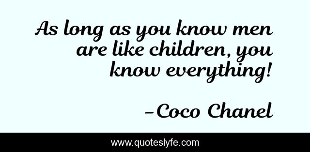 This page presents the quote "As long as you know men are like children, you know everything!". Author of this quote is Coco Chanel. This quote is about children, long,.