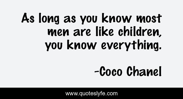 This page presents the quote "As long as you know most men are like children, you know everything.". Author of this quote is Coco Chanel. .